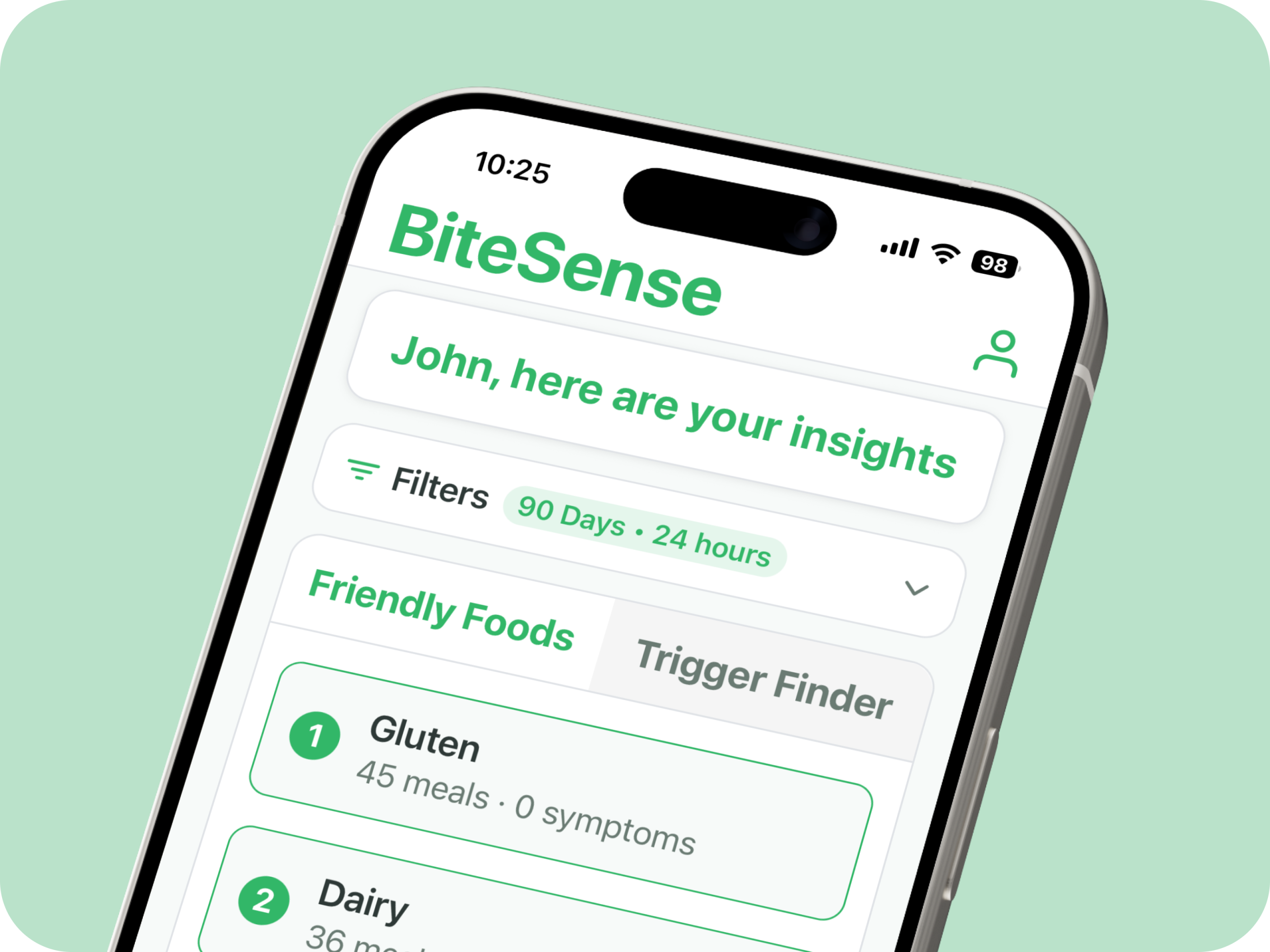 Unlike generic calorie trackers, BiteSense is made for people managing food sensitivities or chronic symptoms. Whether you’re dealing with EOE, IBS, Celiac, Acid Reflux, food sensitivities, food allergies, gluten intolerance, or just trying to figure out what’s bothering your body, BiteSense is for you.